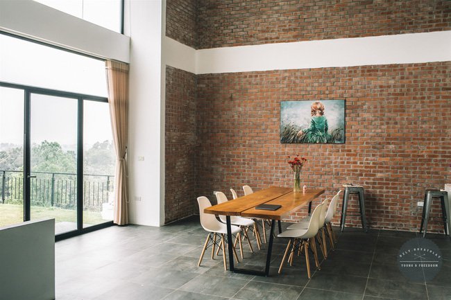 Ngôi nhà này không chỉ ăn điểm ngoại hình mà bên trong nhà cũng rất đẹp. Homestay không nhỏ nhưng lại chỉ có 2 phòng ngủ, 1 phòng khách, 1 bếp, vì thế dù không giới hạn số người, bạn cũng chỉ nên đi tối đa 10 người để không gian nghỉ ngơi thoải mái và đủ riêng tư nhất.