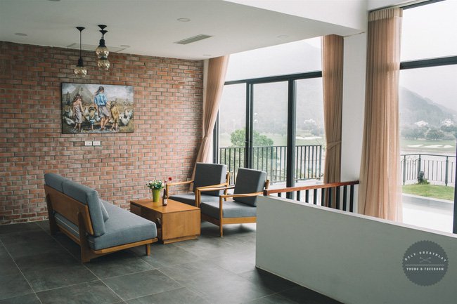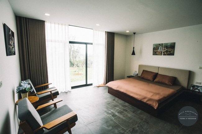 Ngôi nhà này không chỉ ăn điểm ngoại hình mà bên trong nhà cũng rất đẹp. Homestay không nhỏ nhưng lại chỉ có 2 phòng ngủ, 1 phòng khách, 1 bếp, vì thế dù không giới hạn số người, bạn cũng chỉ nên đi tối đa 10 người để không gian nghỉ ngơi thoải mái và đủ riêng tư nhất.