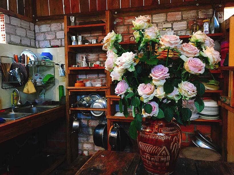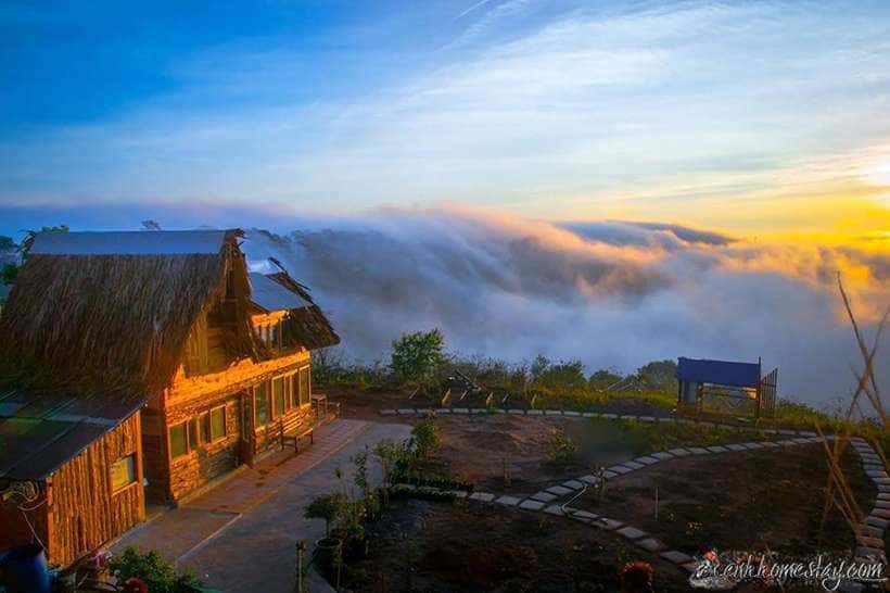 Cảnh quan trang trí trong homestay được nhận xét là rất giống với ngôi nhà nhỏ trên thảo nguyên. Bởi đây là ngôi nhà gỗ với mảnh sân vườn đầy hoa. Với không gian yên tĩnh, nhiều loại hoa cỏ đẹp mắt, thêm mây vờn mỗi sớm bồng bềnh, chạm tay là chạm mây, bạn sẽ cảm nhận được không gian thanh bình có một không hai.