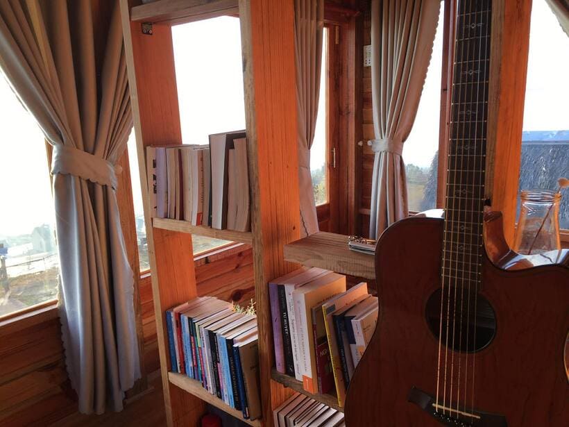 Nơi này bên trong căn nhà còn gây ấn tượng với phong cách trang trí thiên về hoài niệm quá khứ, bằng gỗ bằng các nét mộc mạc. Tất cả tạo nên nét đẹp riêng biệt mà chỉ riêng nơi đây mới sở hữu. Từng chi tiết nhỏ trong căn nhà như bàn ghế, rèm cửa, giường đệm…đều được chủ nhà chăm chút rất cẩn thận, nhằm đảm bảo cho du khách một tinh thần thư thái khi dừng chân tại đây.