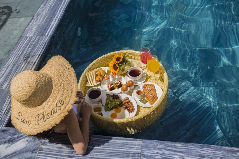 Đến hồ bơi bạn nhớ thưởng thức đồ ăn sáng kiểu “Floating Breakfast”