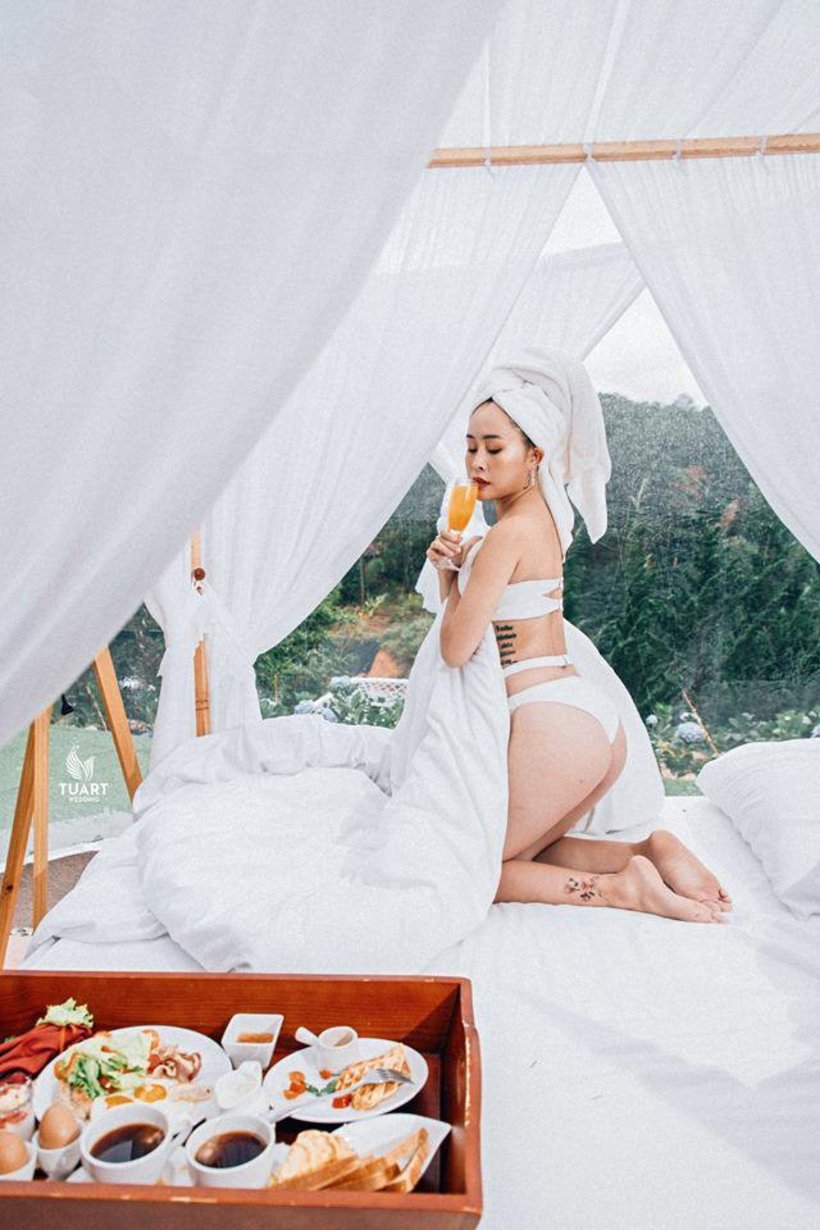 Ban ngày hay tối nếu bạn cần riêng tư có thể buông hết các tấm rèm trắng xuống. Đảm bảo nếu đôi bạn sẽ có không gian như Romeo và Juliet đang đi trốn giữa hoang vu vậy.