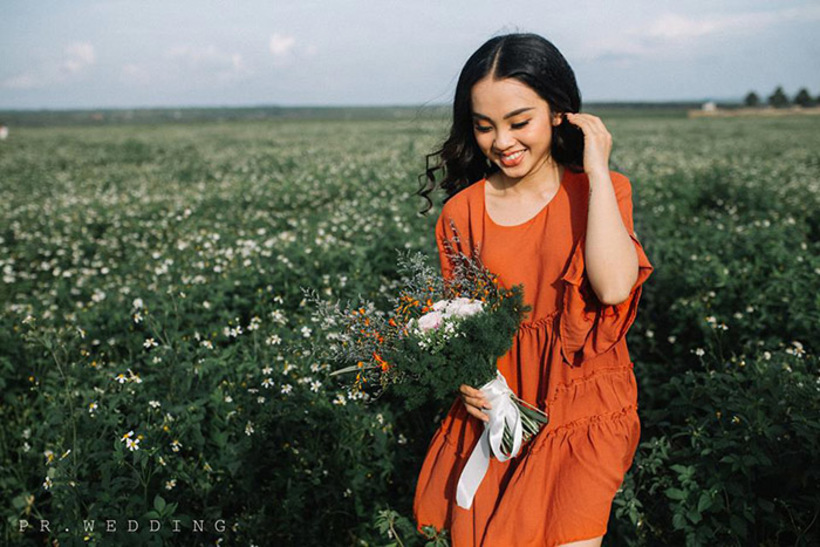 Chẳng cần tạo dáng đâu nhỉ, đứng giữa đồi hoa cũng đẹp sẵn rồi