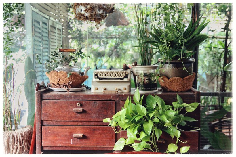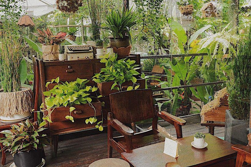 Chủ nhân của Cú đã “bao bọc” quán xung quanh bằng cây cỏ