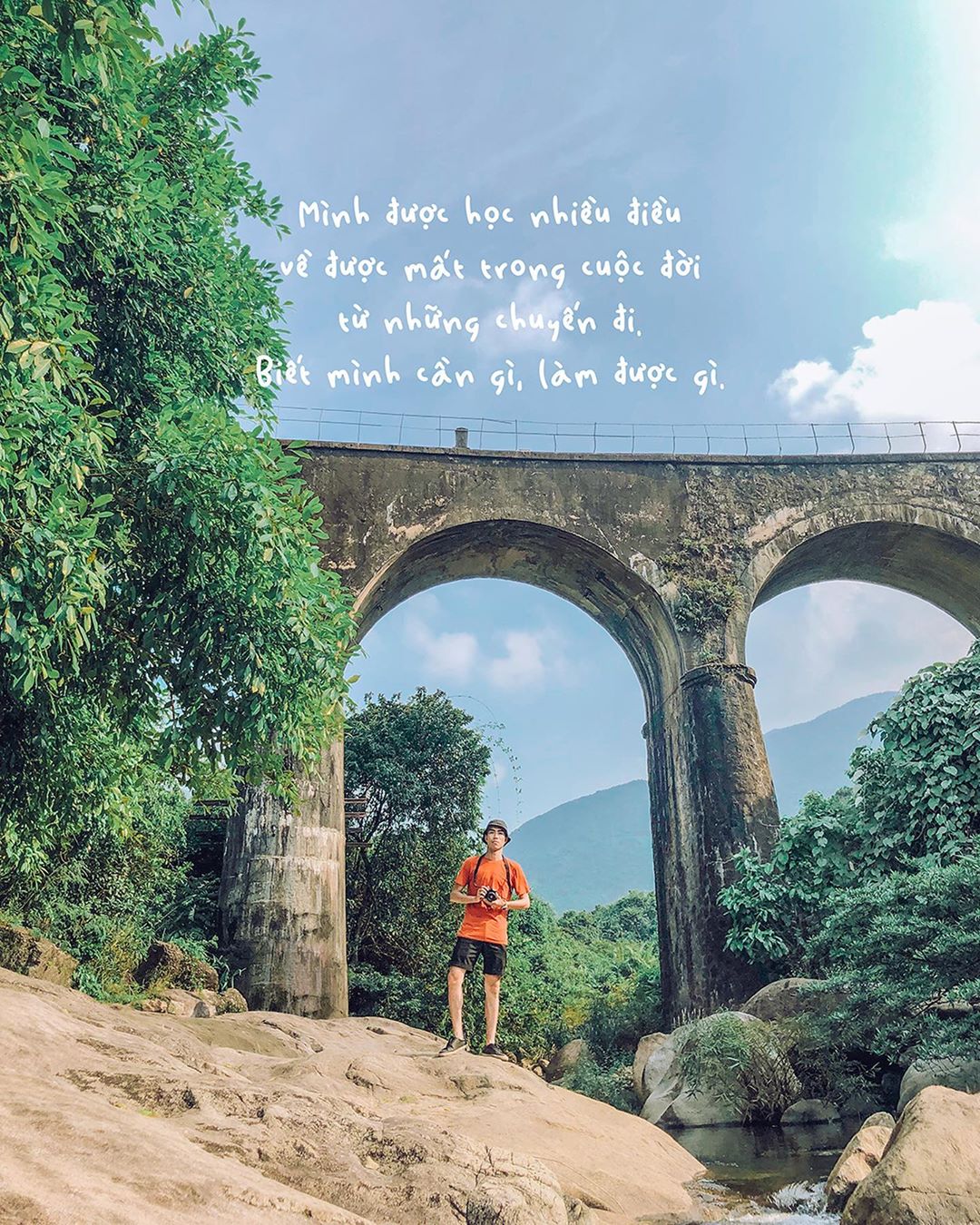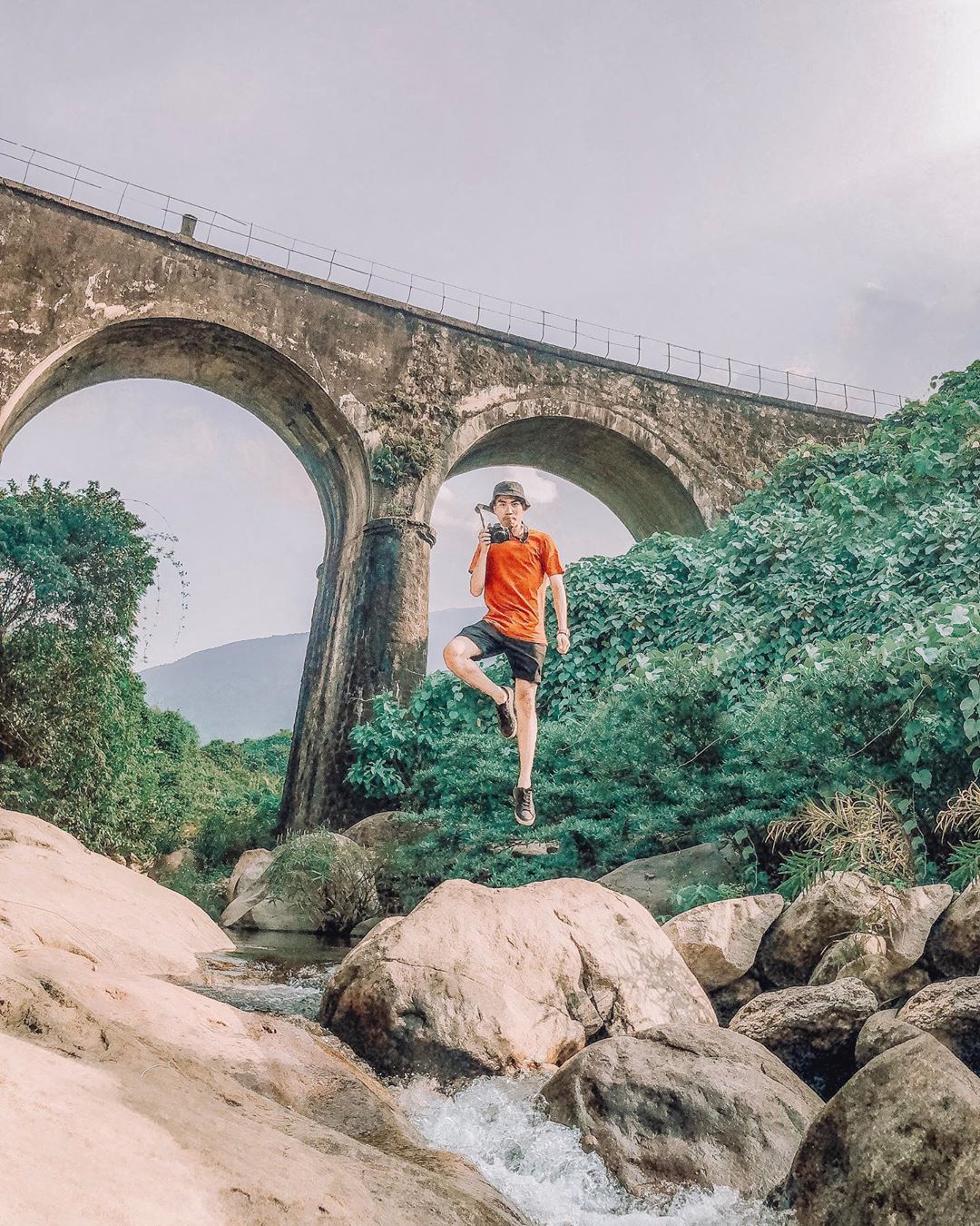 Đến cầu rồi hãy thư giãn ít phút, sốc lại tinh thần kẻo quá choáng ngợp. Bạn hãy đưa tay để ánh nắng xuyên qua kẽ lá, soi chiếu đến tay bạn, tận hưởng không khí trong lành nơi đây. Sau đó ngắm dòng suối trong lành, nín thở lặng nghe tiếng lá cây xào xạc cùng gió thổi mát rượi để thiên nhiên cùng cảnh quan nơi đây hòa nhập với con người bạn.