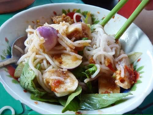 Tắm biển xong, lên công viên biển Bình Sơn dạo chơi, ghé đường Yên Ninh, 16/4 thưởng thức các món đặc sản Ninh Thuận như bánh căn, bánh xèo, bánh tráng nướng mỡ hành, mực một nắng, nem nướng, bún mắm nêm, bánh căn,…