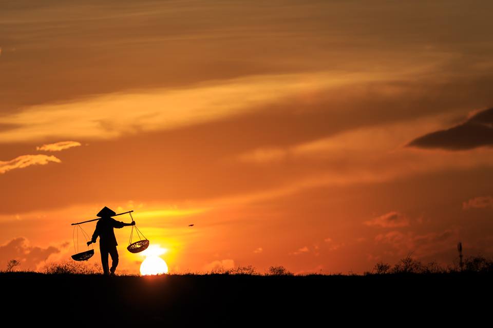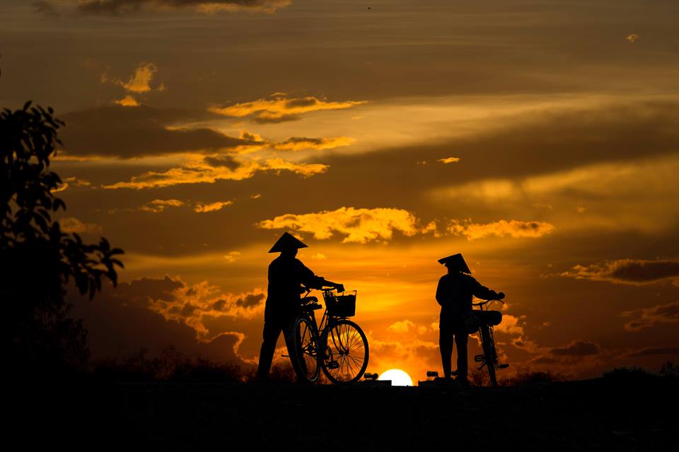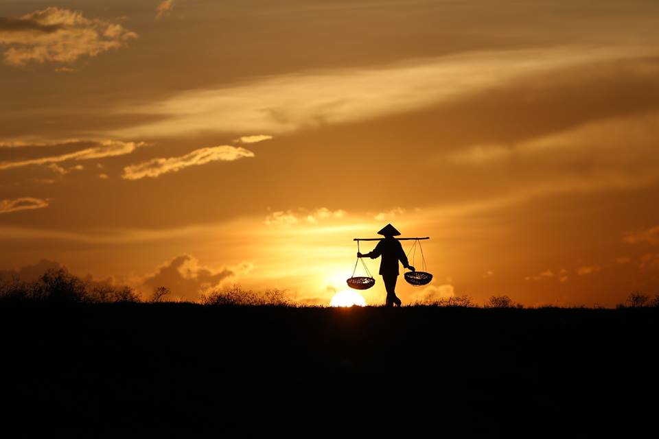 Hoàng hôn đỏ rực ở làng quê thanh bình
