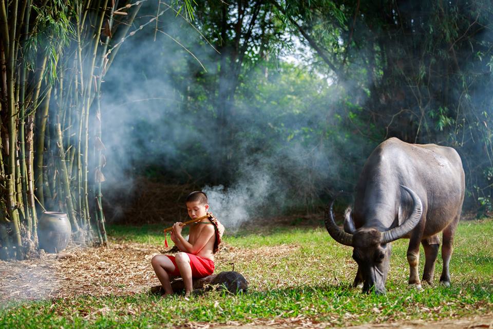 Vừa chăn trâu vừa thổi sáo bên khóm trúc, khóm tre hay trên những cây cầu, con sông,….với dân thành thị chỉ nghe qua sách vở tivi,…nhưng ở vùng quê vốn rất bình thường.