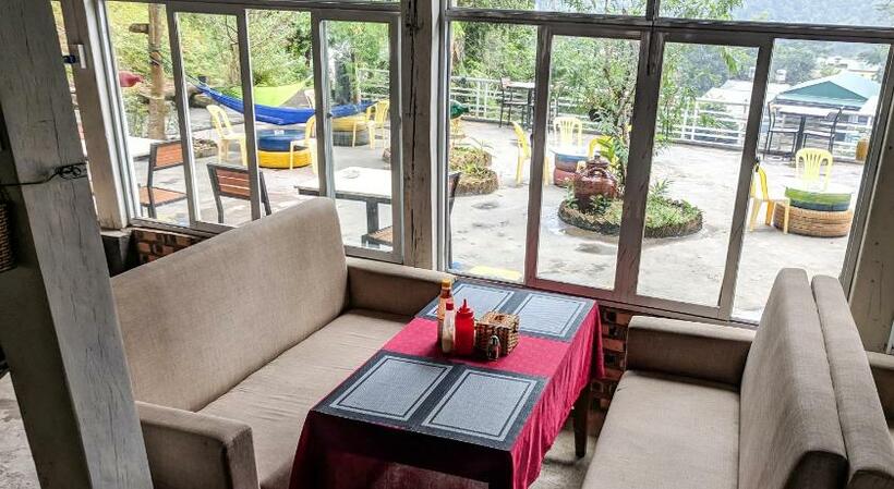 Trước nhà có một khoảnh sân cho du khách ngắm phố phường Hà Giang. Đặc biệt, tầng 1 của homestay là một quán café nổi tiếng nhất nhì Hà Giang nên nếu bạn không có ý định nghỉ lại đây cũng nên thử nhâm nhi một tách cà phê nhé, đảm bảo sẽ không hối tiếc đâu.