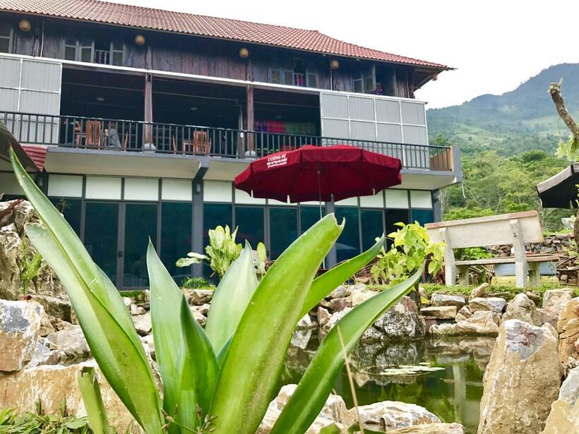 Homestay đẹp này là một quần thể các nhà sàn nằm ẩn mình giữa núi rừng yên tĩnh, được bao bọc bởi núi non trùng điệp, cỏ cây và các cánh đồng ruộng lúa.