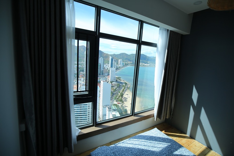 Đặc biệt, có lẽ cái bất ngờ lớn lao nhất chính là được đứng ở ban công tòa nhà cao tầng, đưa mắt thu trọn khung cảnh biển xanh cát trắng đẹp như tranh. Tối đến mà được ngồi ở đây ngắm sao trời, nhâm nhi một chút rượu vang, để gió nghịch đùa mái tóc và cho hồn lang thang với những ánh đèn thành phố biển lúc về đêm, chắc chắn đây sẽ là những khoảng khắc đẹp nhất mà bạn không bao giờ muốn quên.