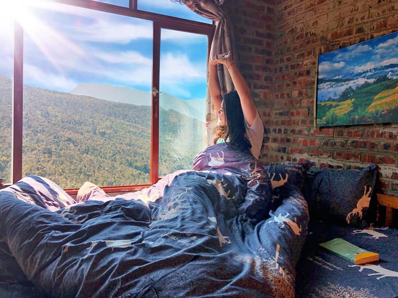 Nhờ nằm trên một vùng núi cao mà từ homestay này, chỉ cần mở cửa sổ là bạn đã có thể chiêm ngưỡng toàn cảnh núi non mây trời rất lãng mạn.
