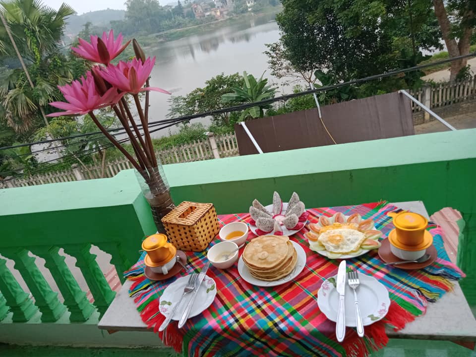 Thac Ba Family Homestay cũng sở hữu view hướng ra khu vườn thoáng mát mà du khách không thể bỏ lỡ. Homestay Yên Bái có khi nghỉ dưỡng tích hợp với không gian nhà hàng, quầy bar phục vụ 24h.