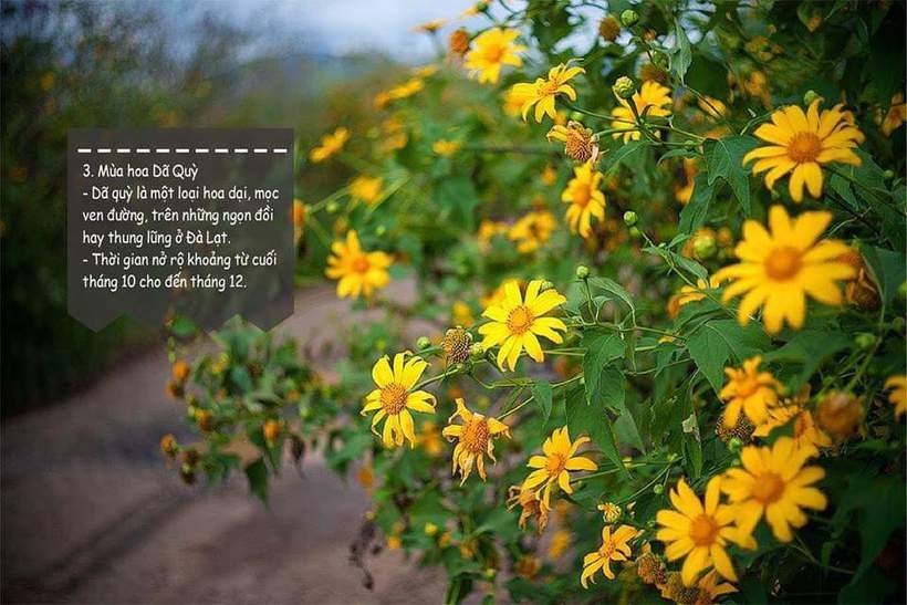 Nhất là những du khách tới Đà Lạt vào thời điểm tháng 10 đến tháng 12 sẽ được chiêm ngưỡng vẻ đẹp tuyệt mỹ của 3 loài hoa mang sắc vàng rực rỡ: Là màu vàng tươi mới tràn trề năng lượng của loài hoa Dã Quỳ phóng khoáng, là màu vàng nền nã quý phái của hoa Mimosa kiêu kì và cả sắc vàng của niềm tin hi vọng từ loài hoa hướng dương nồng nàn.