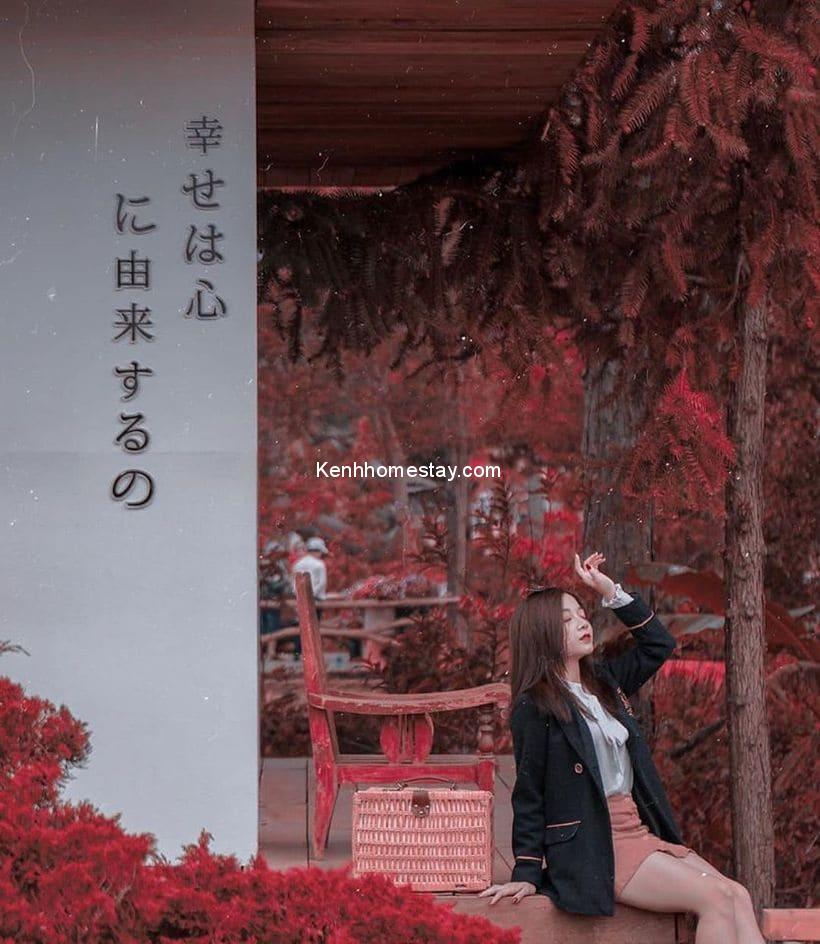Đến đây không chỉ được check in vô vàn các kiểu ảnh đẹp với quán mà bạn còn có thể ngắm và chụp hình cùng mai anh đào đang vào độ nở rộ đẹp nhất ở Đà Lạt. Vì khắp các “hang cùng ngõ hẻm” của Kokoro đều tràn ngập sắc hồng phai này.