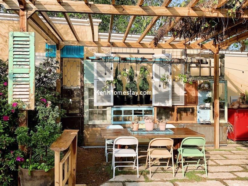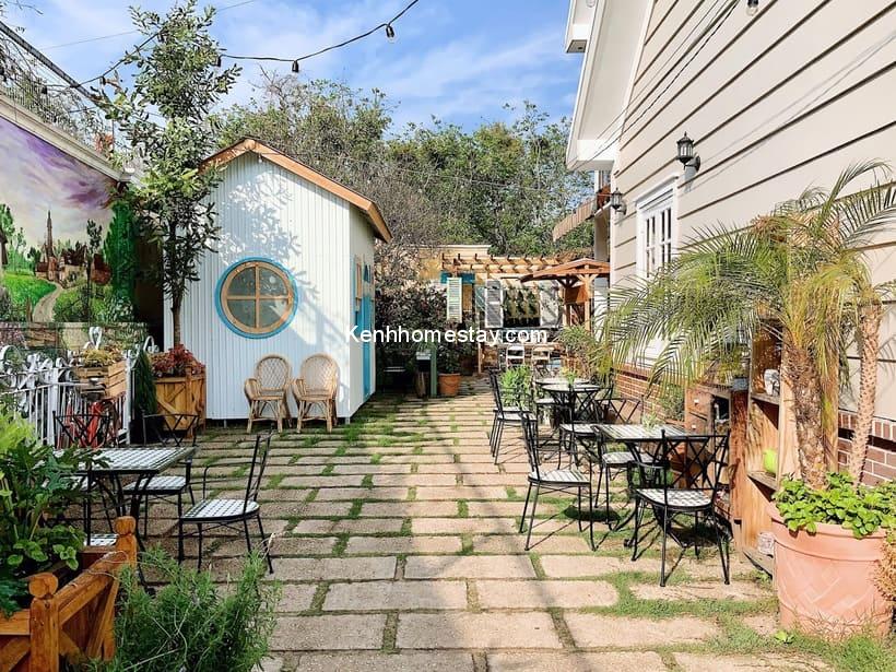 Khu vực khuôn viên còn có vườn rau xanh tha hồ cho bạn trồng trọ và thu hoạch. Chưa kể nơi đâu cũng là những địa điểm check in sống ảo, ảo diệu phải biết.