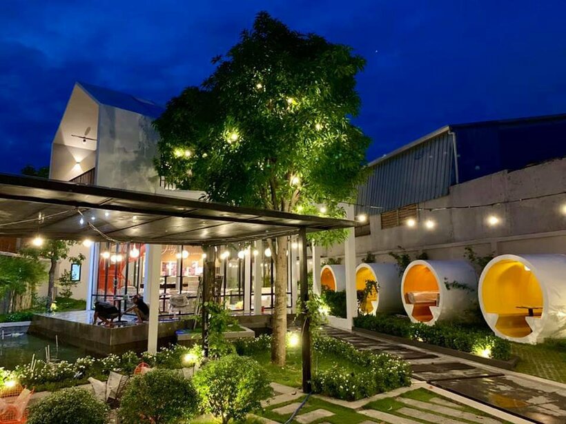 Bởi ngay khi đến đây bạn ấn tượng cực mạnh với không gian các gian uống café hình ống cống đầy màu sắc. Từng khoang ống cống vỏ ngoài trắng, trong vàng san sát nhau tạo thành 1 dãy đẹp mắt, lạ, độc.