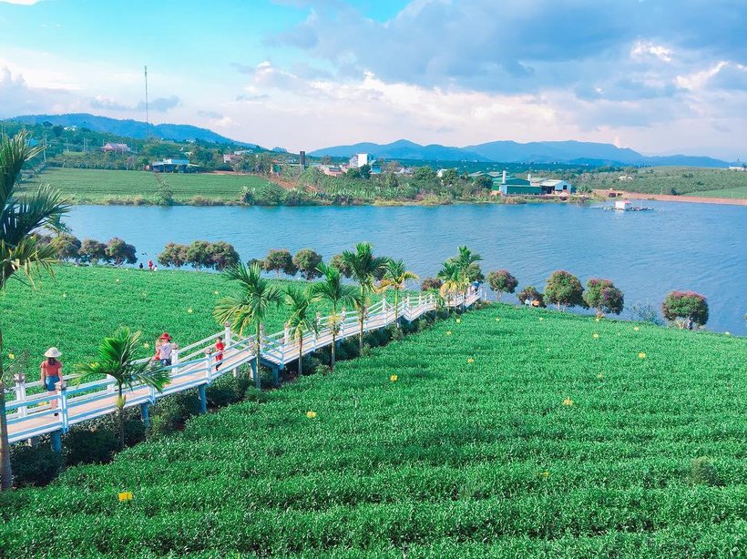 Nếu bạn đã chán việc chỉ đến và “sống ảo” với đồi chè xanh, vậy thì bạn có thể cân nhắc những góc check-in số một khác như chiếc cầu tình yêu màu trắng dẫn ra đồi chè, đi kèm với đó là những bộ bàn ghế sạch sẽ được đặt quanh đồi chè, nơi bạn có thể tạm dừng chân sau khi đã khám phá chán nơi đây.