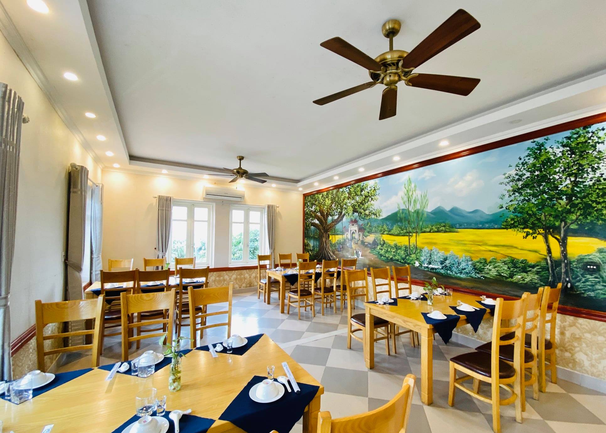 Bên cạnh đó, nhà hàng còn phục vụ phòng phát biểu hội nghị, có bãi đậu xe ô tô lớn công suất 50 – 70 chiếc. Sân vườn thoáng mát, khách đi theo đoàn đông cũng có không gian mở thoải mái. Nếu thực khách đặt từ 3 – 5 bàn tiệc thì nhà hàng còn khuyến mại thêm setup sự kiện.