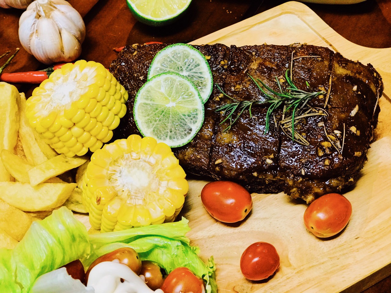 Menu đồ ăn rất đa dạng, các món đều được tẩm ướp hương vị riêng mà ăn một lần là mê một đời. Nổi tiếng như món sườn nướng là hương thảo, tôm sốt thái, tai heo sốt thái cóc xanh, tôm nướng muối ớt, lòng nướng…