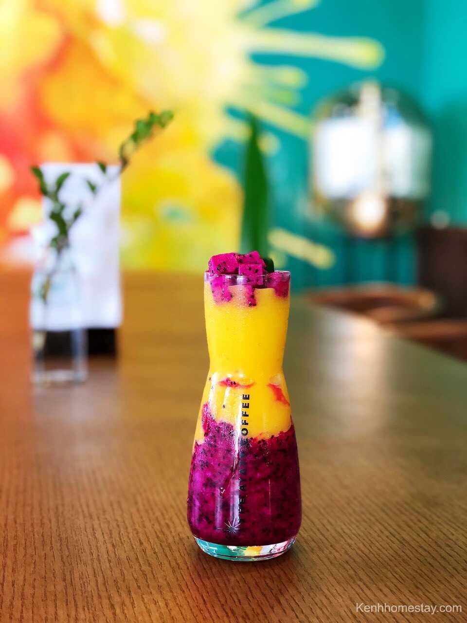 Đồ uống đa dạng lắm, quầy pha chế tại tầng trệt, thiết kế không gian mở nên thoang thoảng hương cà phê rang, khách có thể thưởng thức được nghệ thuật pha chế nữa. Những món nước như trà vải nha đam hạt chia thanh mát, củ dền sữa hạt phỉ màu sắc, mojito kiwi, sinh tố, café kem chanh, sữa chua dẻo, bơ mít dầm và rất nhiều món khác đều đáng để thưởng thức.