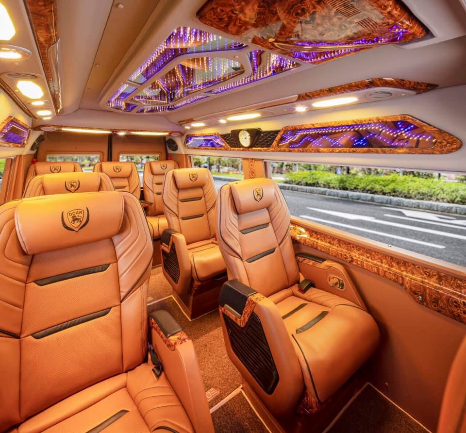 Xe có hệ thống đèn đẹp mắt, ghế ngồi có chỗ để tay và có thể xoay 360 độ hoặc nâng lên hạ xuống từ 10 – 45 độ cho phép hành khách thoải mái nghỉ ngơi ở nhiều tư thế.