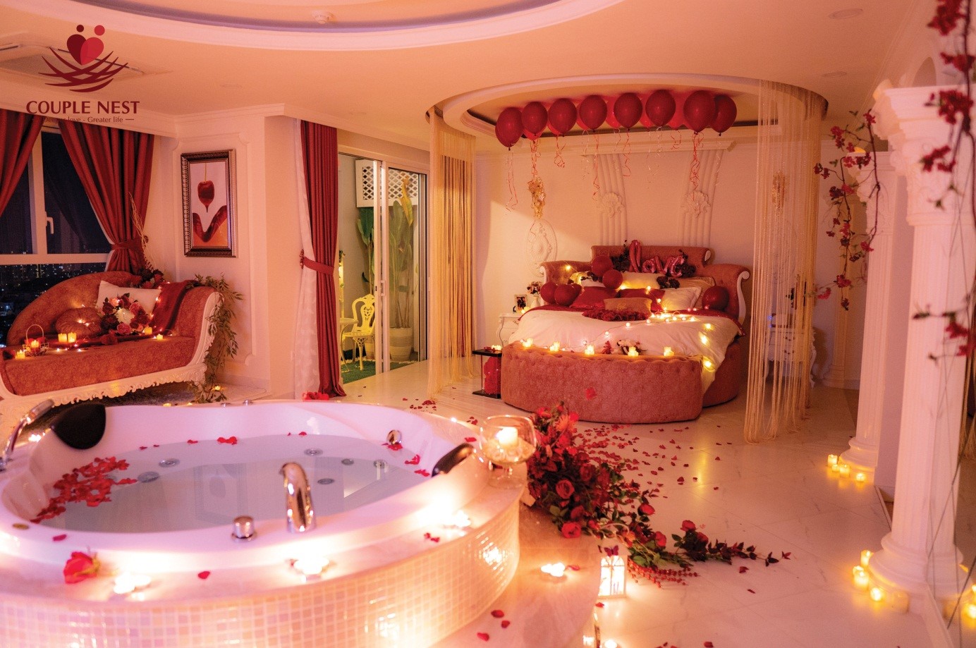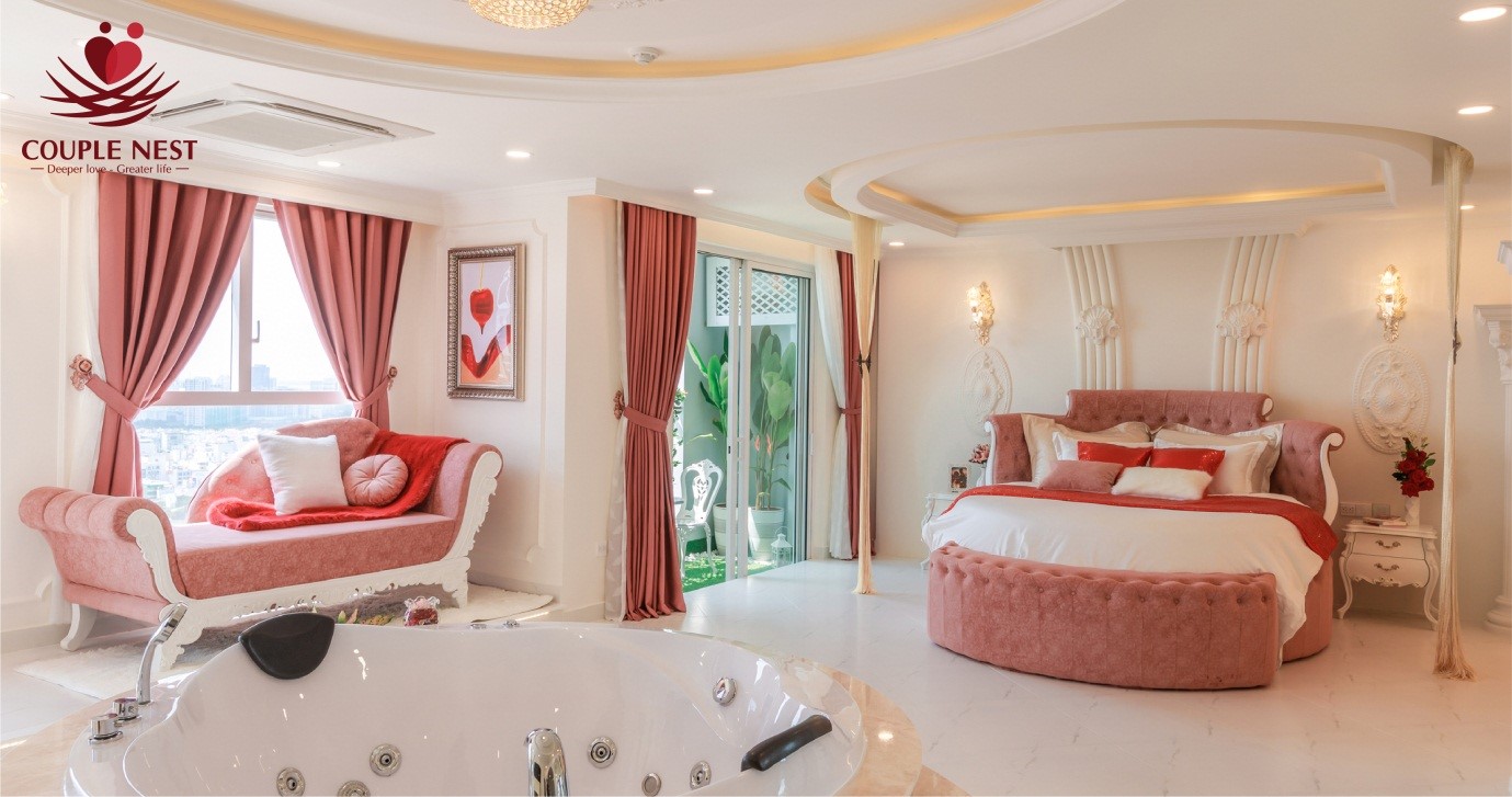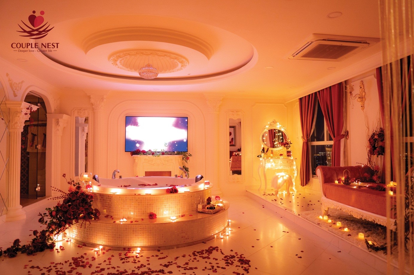 Bên cạnh đó, mỗi phòng đều được free CON DOM, nước suối, có ghế tantra xịn xò. Với những ngày đặc biệt bạn có thể đặt setup phòng để tỏ tình hay tạo bất ngờ với honey.