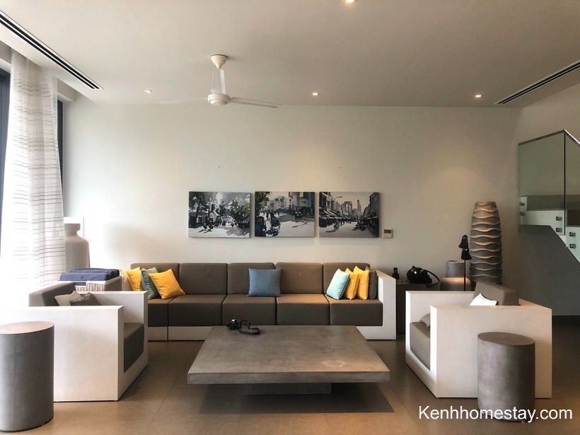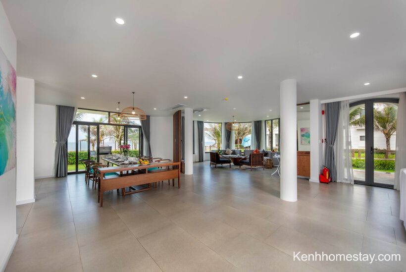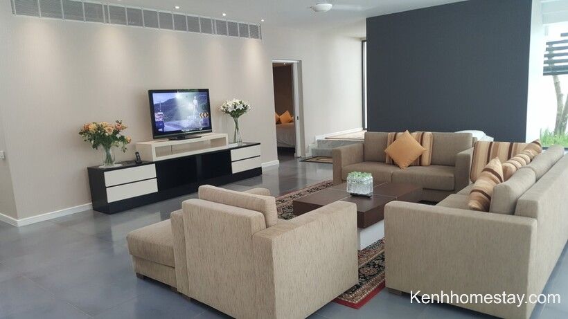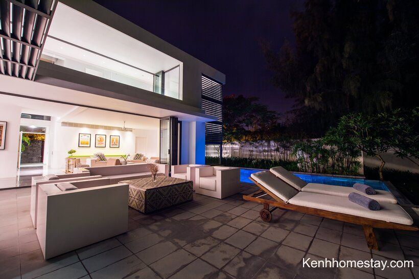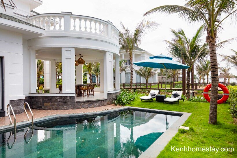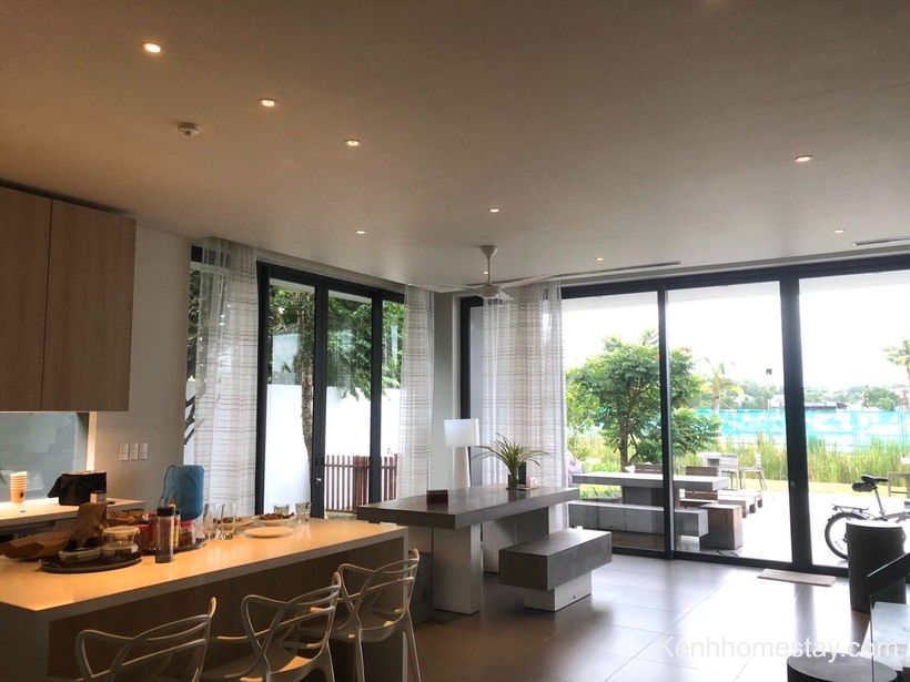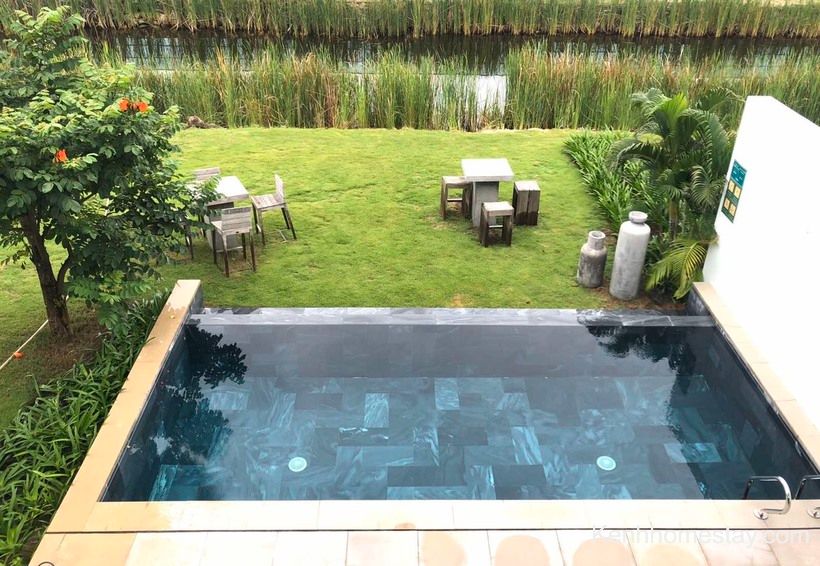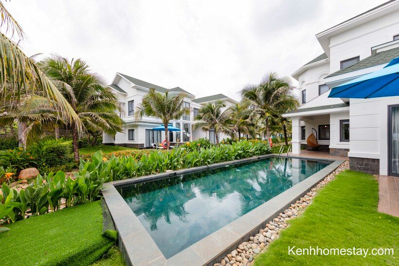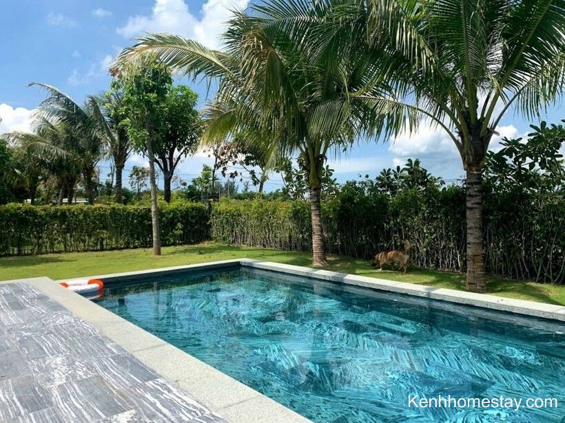 Căn có đầy đủ hồ bơi, sân cỏ, bếp… để khách hàng tổ chức những hoạt động vui chơi. Bên cạnh đó, đồ dùng sinh hoạt cũng được chuẩn bị cẩn thận và được nhân viên thay mới hoàn toàn, đảm bảo vệ sinh.
