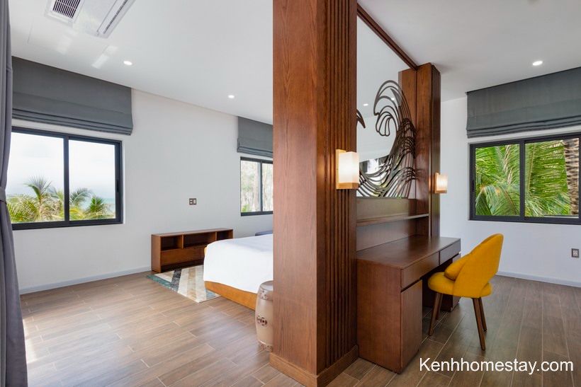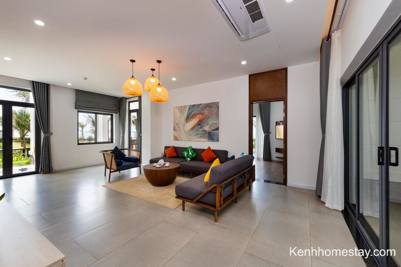 Cũng giống như cái tên Seaside, đây là một căn villa có view biển cực đẹp. Căn có sức chứa khoảng 8 người lớn với diện tích lên đến 450m2, nếu số người vượt quá quy định căn sẽ có thu thêm phụ thu 1.000.000đ/người lớn và 300.000dd/trẻ em. Bên trong căn được thiết thiết kế 4 phòng ngủ cùng toilet riêng biệt tạo không gian riêng tư. Cùng với đó, căn cũng được trang bị đầy đủ tiện nghi từ khăn tắm, kem đánh răng dầu gội…
