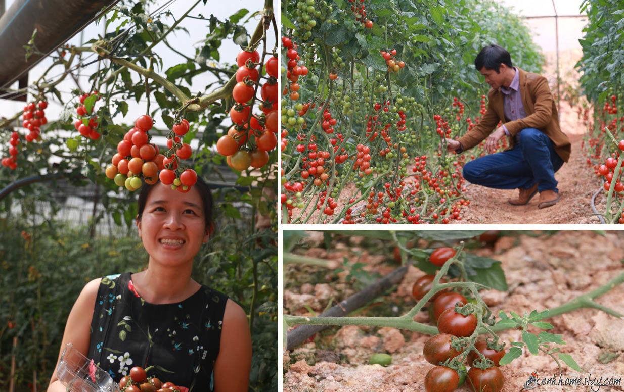 Cà chua ở vườn dâu Phước Lộc cũng có hai loại là cà chua chocolate và cà chua cherry. Cà chua tự hái, mua tại vườn với giá phải chăng, hợp túi tiền nhiều người. Những quả cà chua chín mọng, trĩu cành, được xếp gọn gàng vào trong hộp cũng là món quà hấp dẫn không kém dâu tây.