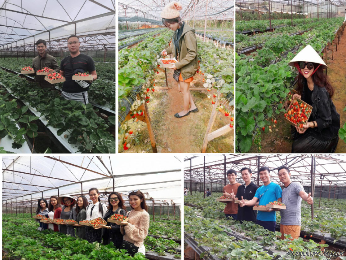 Việc hái dâu ở đây cũng khá thuận tiện và thoải mái, chủ vườn dâu sẽ hướng dẫn bạn cách hái dâu sao cho đẹp, còn cuốn. Ngoài ra, sẽ không có bất kỳ động thái nào gọi là “để ý” đến bạn vì đã có camera.